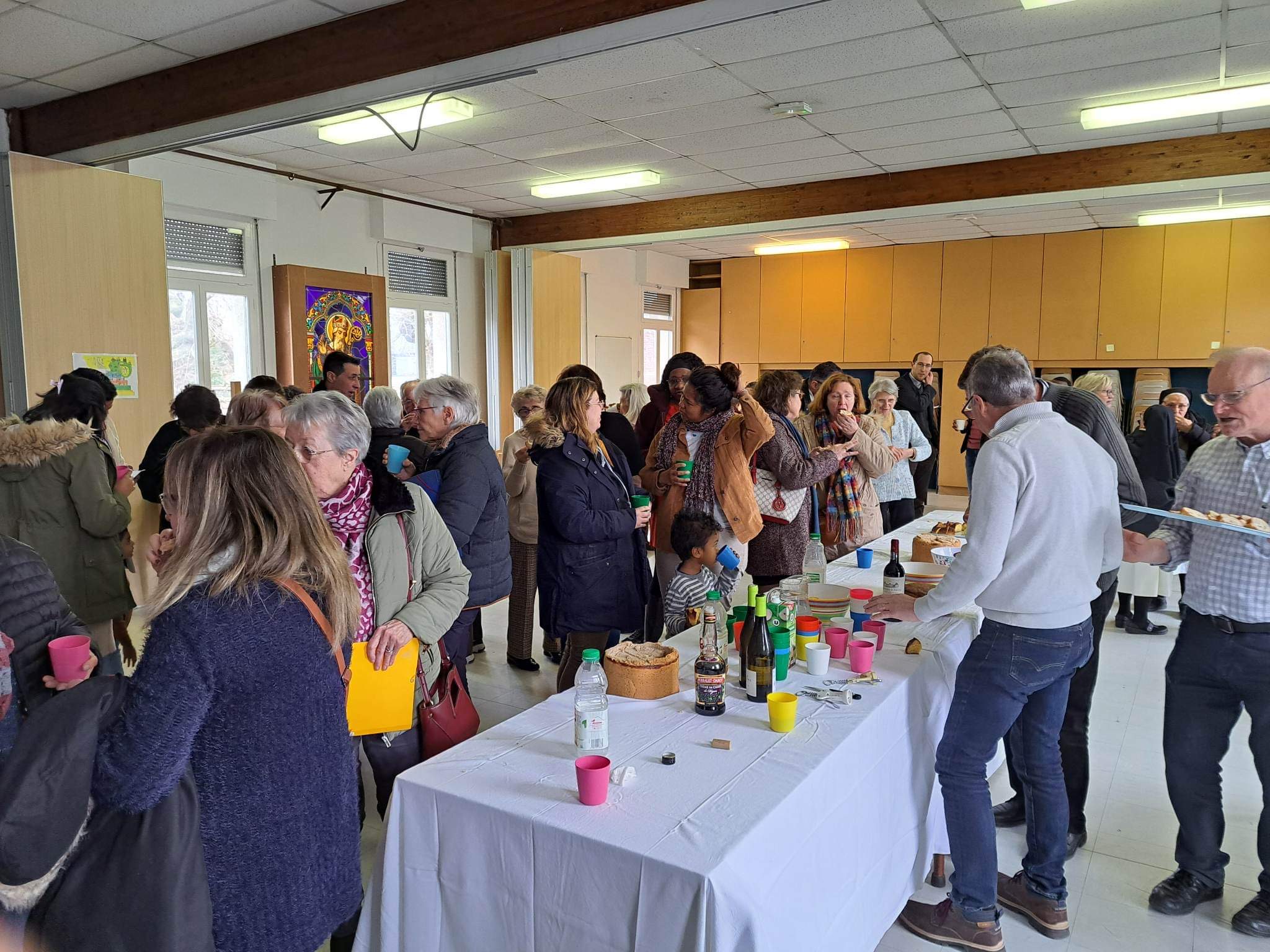 A l’invitation du père Silouane Deletraz, nous nous sommes retrouvés une soixantaine de personnes bénévoles de la paroisse. Les différentes équipes étaient représentées: équipe pastorale paroissiale, le conseil économique, la liturgie, sacristie, équipes mariage, baptême, deuil, relais des villages, distributeurs de sources vives, maintenance entretien, catéchèse, aumônerie, catéchuménat, servants d’autel, vie spirituelle et convivialité, communautés religieuses, accueil, communication…