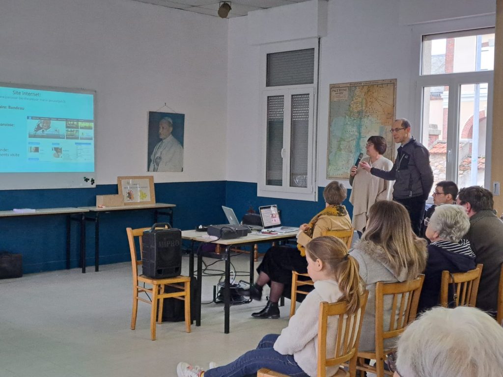 Une présentation des grands projets paroissiaux: Visibilité de la vie paroissiale au travers de l’affichage et présentation des différentes équipes ,l’isolation de la maison paroissiale: remplacement des fenêtres et portes , une première tranche déjà réalisée financée au 2/3 par des dons, le développement de l’utilisation de l’application ENORIA pour coordonner les différentes équipes et activités de la paroisse.