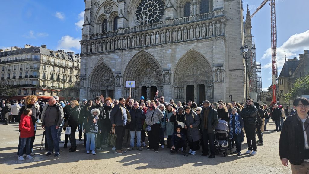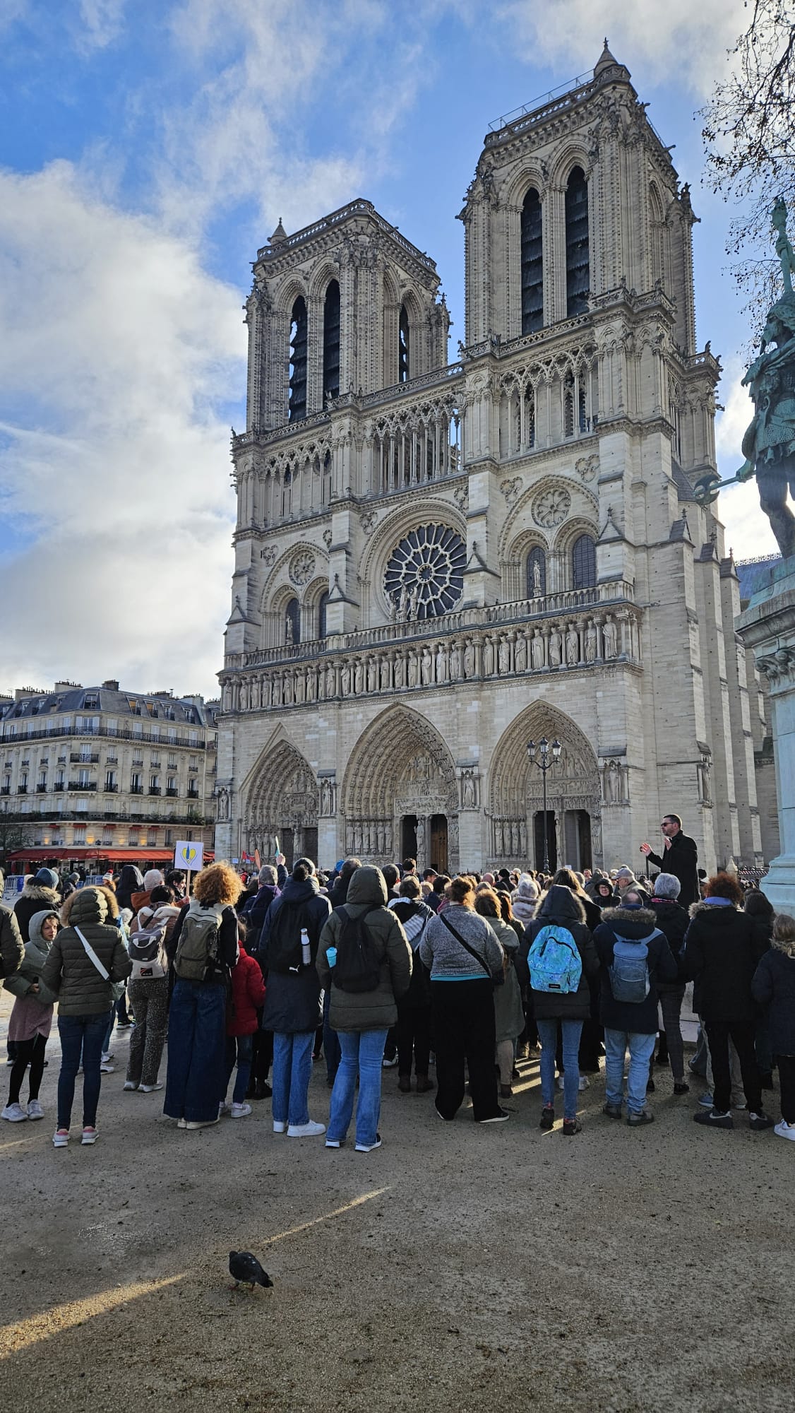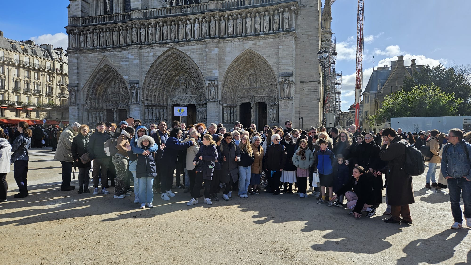Une centaine de paroissiens, venus en bus ou individuellement, se sont retrouvés devant le parvis de Notre Dame de Paris ce samedi matin 14 mars 2026.